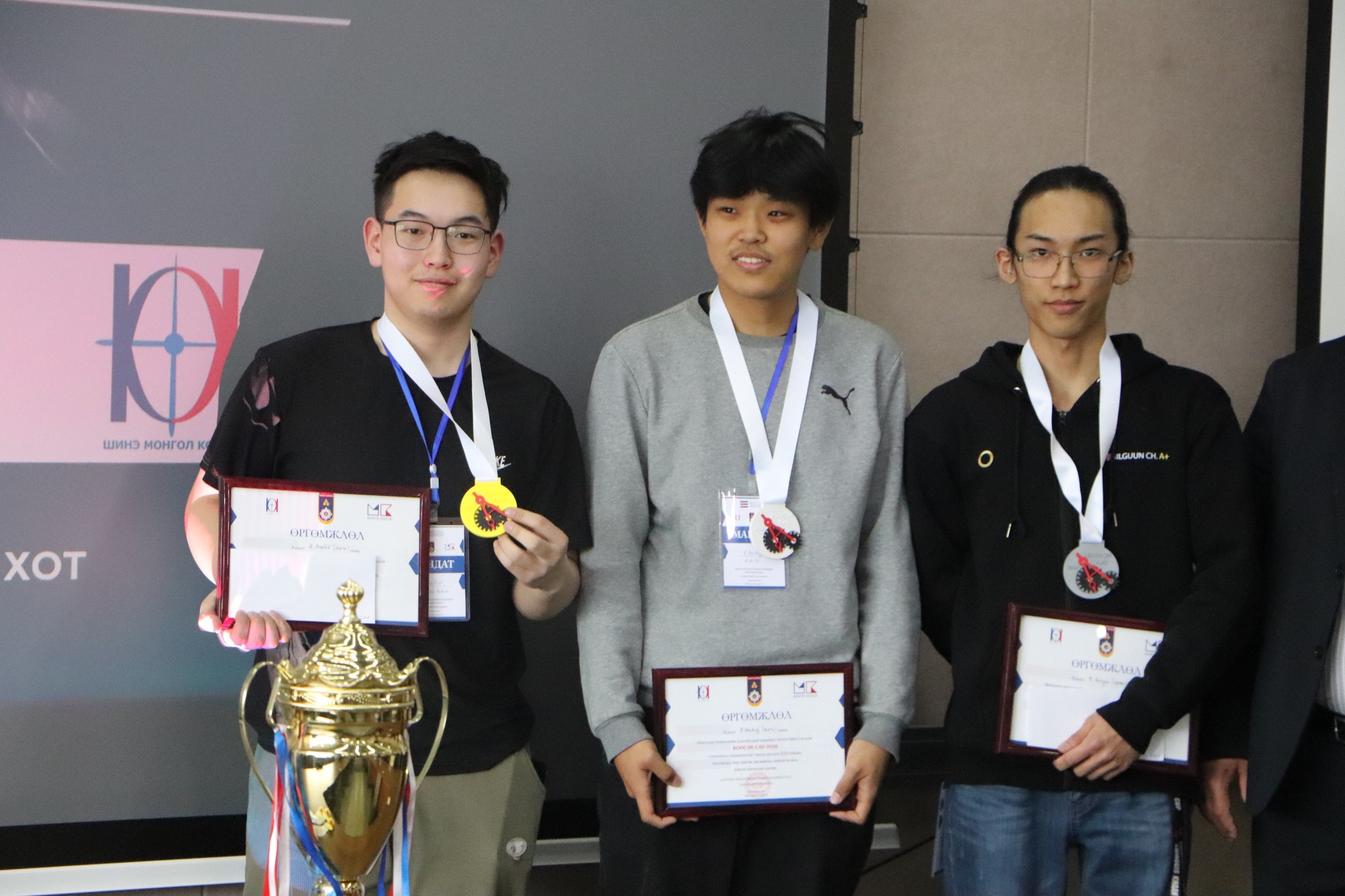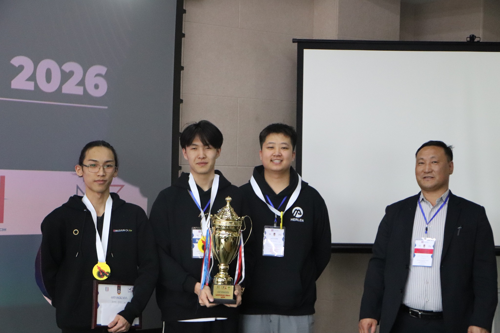 ШУТИС-ийн харьяа Технологийн коллежоос ГАНЦААРЧИЛСАН төрөлд Механик инженерчлэл хөтөлбөрийн 5-р ангийн оюутан Ч.БИЛГҮҮН гуравдугаар байрт, БАГИЙН төрөлд Механик инженерчлэл хөтөлбөрийн 5-р ангийн оюутан Н.ХЭРЛЭН, Б.ХОСБАЯР, Ч.БИЛГҮҮН нарын ШУТИС-КООСЭН I баг ТЭРГҮҮН байранд тус тус шалгарав.
